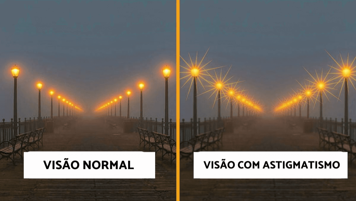 O astigmatismo é um problema visual caracterizado por visão desfocada e distorção/sombras nas imagens observadas, ao perto e/ou ao longe.